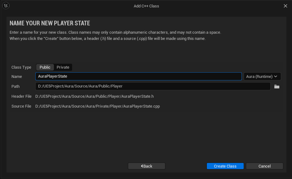 플레이어 캐릭터의 경우 PlayerState 에서 관리하므로 AuraPlayerState 클래스에서 선언과 구현부를 추가로 작성한다.