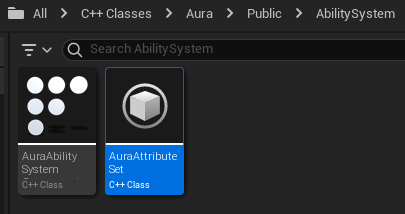 먼저 ASC 와 AttributeSet 을 플레이어 캐릭터와 적이 사용하기 위해 상위 클래스인 AuraCharacterBase 에 코드를 추가한다