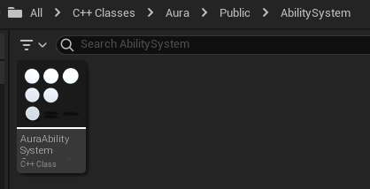 AbilitySystemComponent 클래스 기반 AuraAbiltiySystemComponent 를 생성한다.