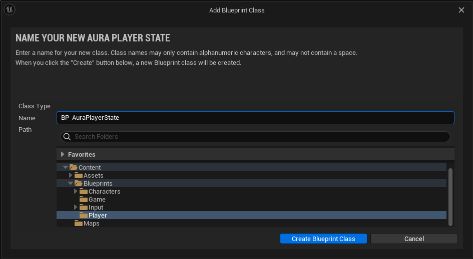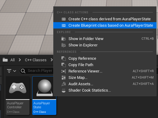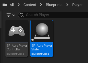 AuraPlayerState 기반 BP_AuraPlayerState 블루프린트를 생성한다.