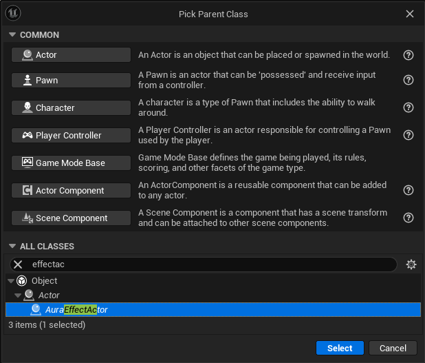 이제 Attribute 값을 변경시키기 위해 임시용으로 EffectActor를 만들 것이다.