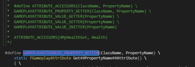 UPROPERTY(BlueprintReadOnly, ReplicatedUsing = OnRep_Health, Category = "Vital Attributes") FGameplayAttributeData Health; GAMEPLAYATTRIBUTE_PROPERTY_GETTER(UAuraAttributeSet, Health);