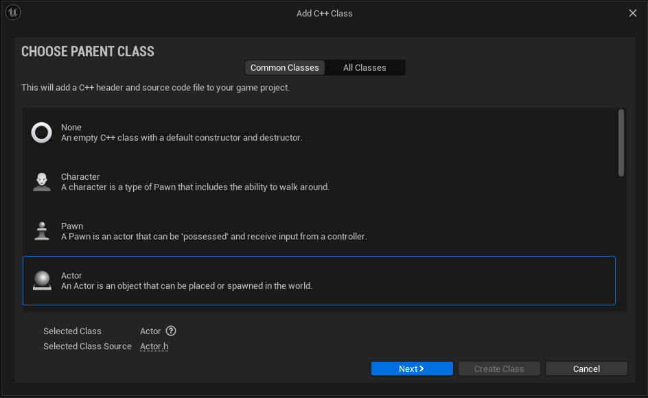 // StaticClass() 함수는 해당 클래스의 UCLASS() 객체를 반환