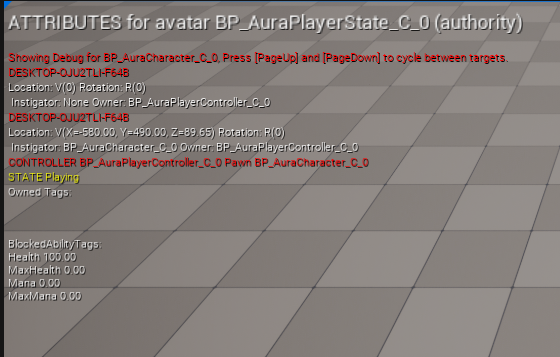 빨간색으로 표시된 내용에 따라 PageUp과 PageDown을 이용해 다른 타겟의 AbilitySystem을 보는 것도 가능하다.