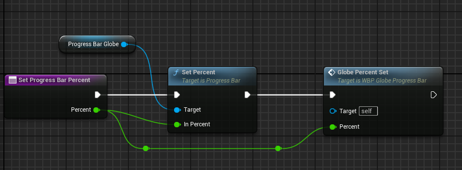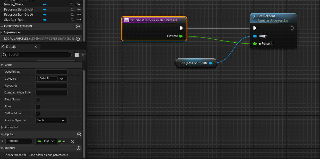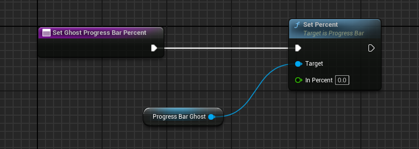Set Progress Bar Percent 함수에 추가한 커스텀 이벤트인 Ghost Percent Set 노드를 연결시켜준다.