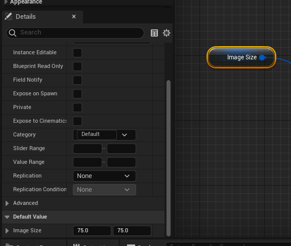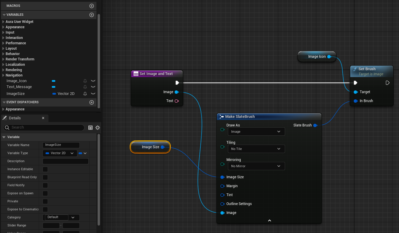 이미지 사이즈를 정해주기 위해 Vector 2D 타입의 변수 ImageSize 를 생성하고