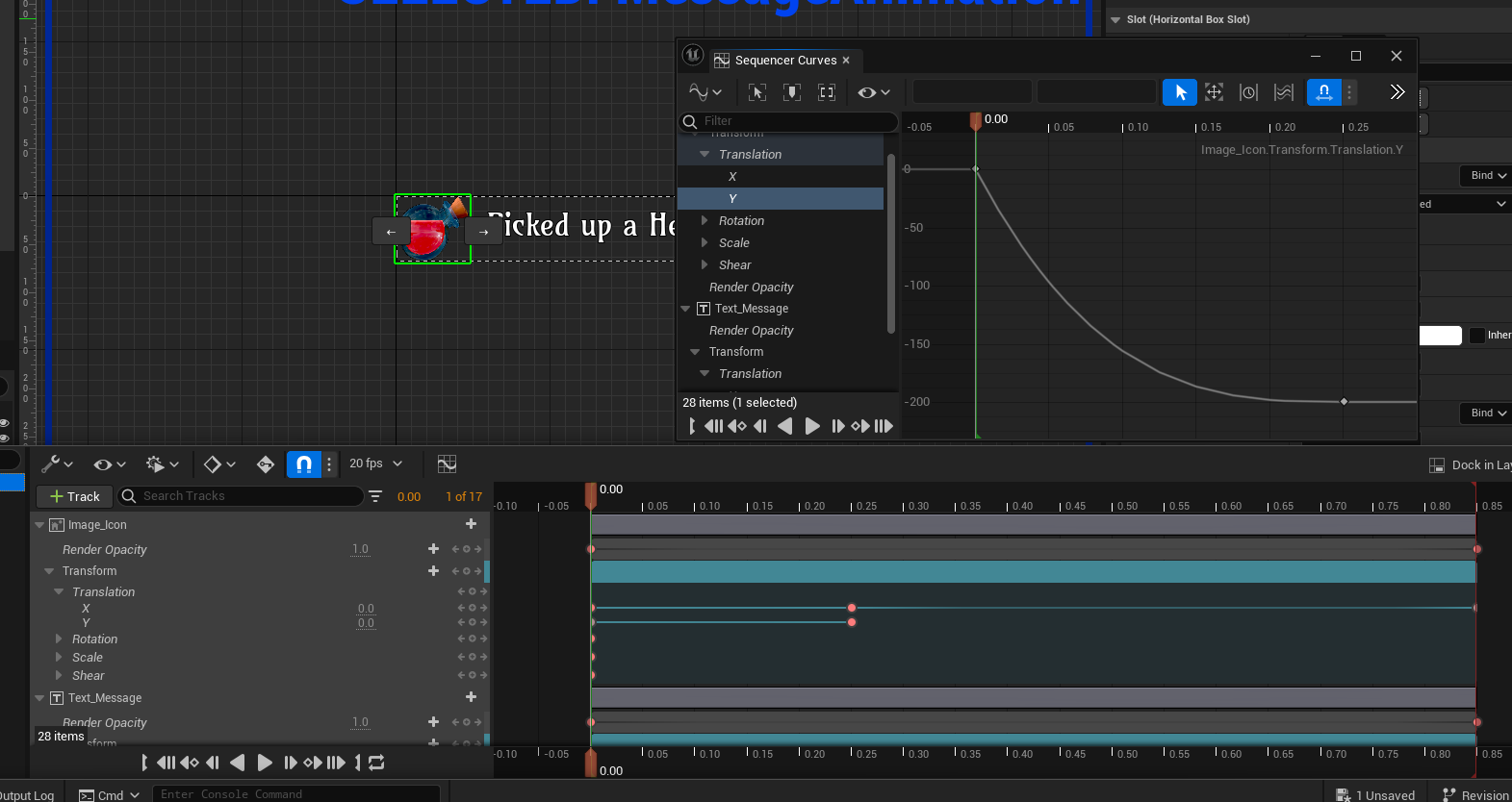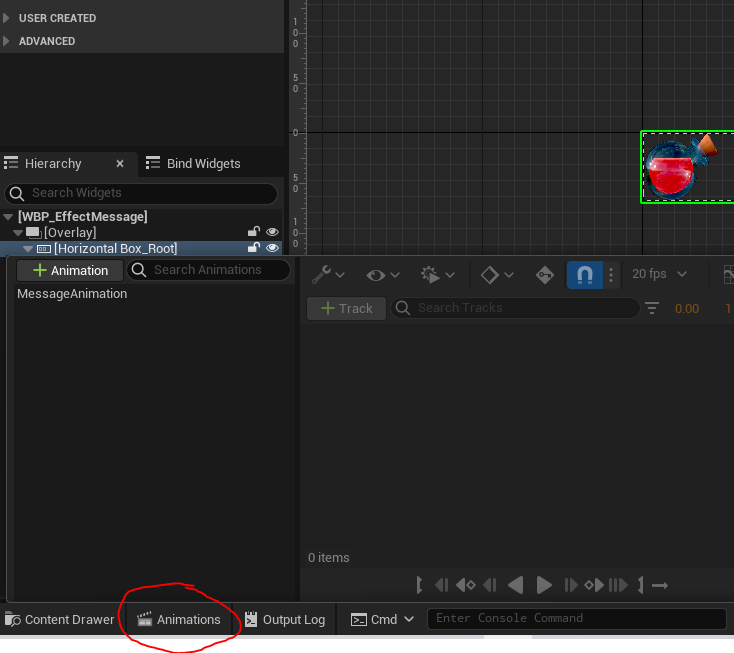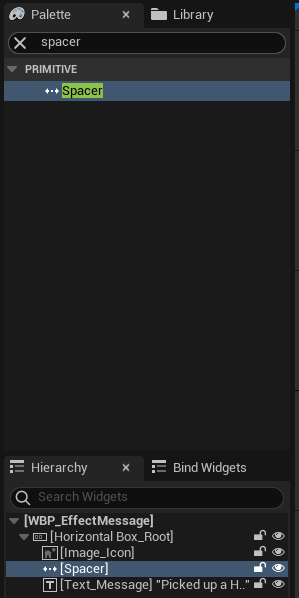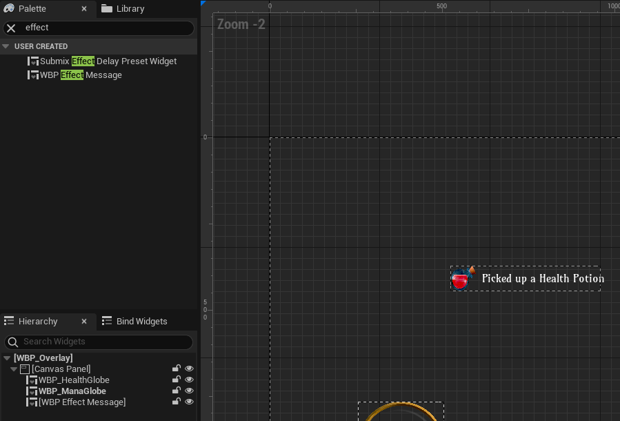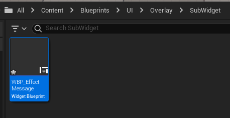 이제 WBP_EffectdMessage 가 잘 생성되었는지 확인하기 위해 WBP_Overlay 에 해당 Widget을 추가하여 확인한다.