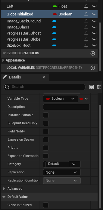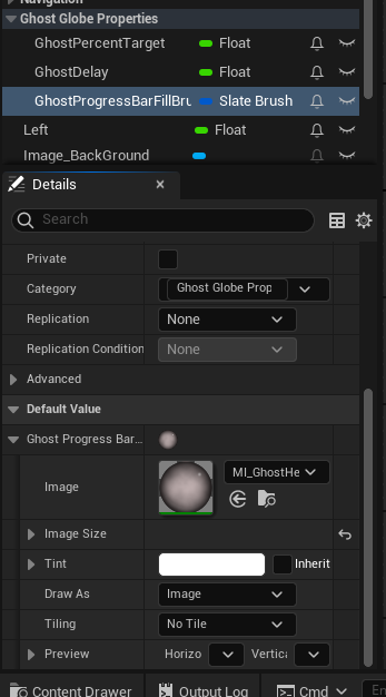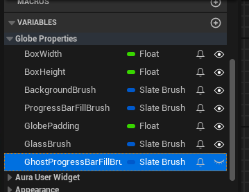 GhostGlobe의 ProgressBar 이미지 변경을 위한 변수 GhostProgressBarFillBrush 를 하나 추가한 뒤 카테고리를 변경한다.