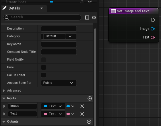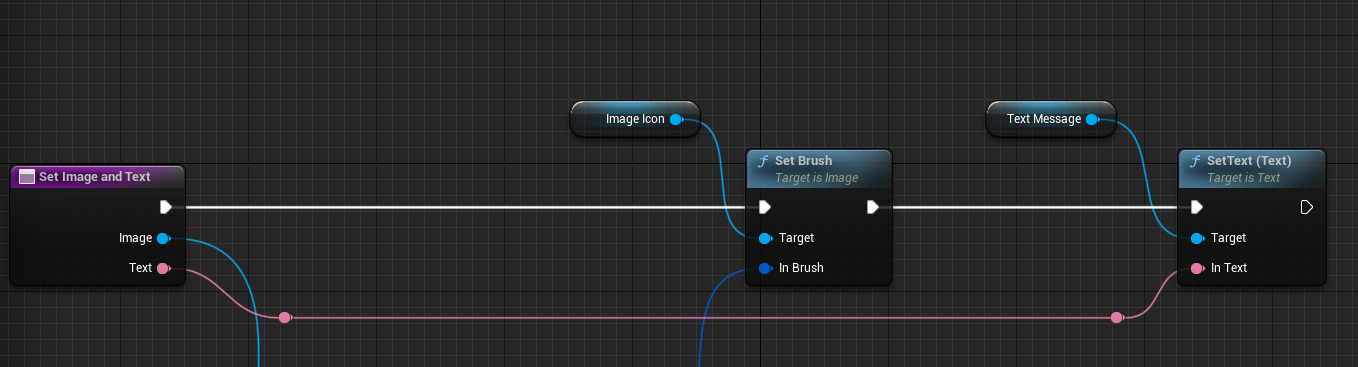 SetImageAndText 함수를 하나 만들어준 다음 Input으로 Texture 2D -> Object Reference 와 Text 를 받도록 하고