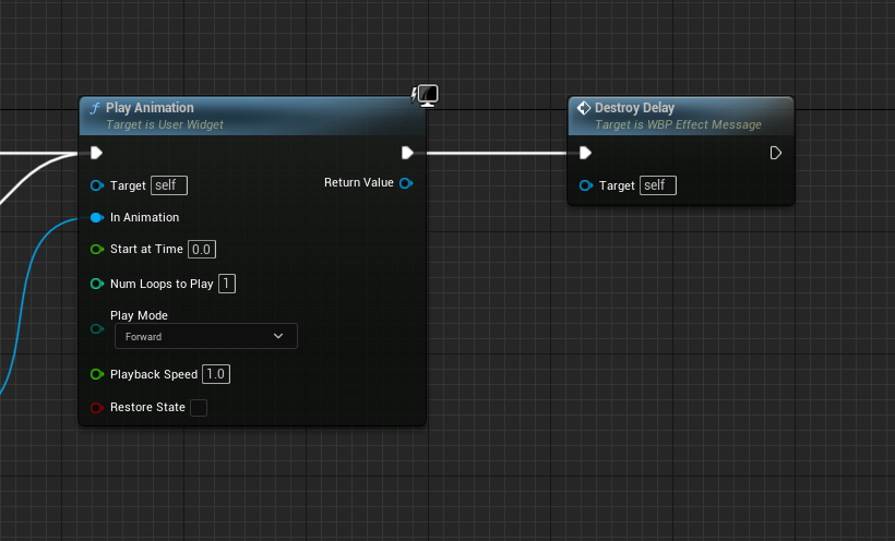 위젯을 뷰포트에 추가하기 위해 Add to Veiwport 노드를 추가하여 연결한 후, 확인용으로 추가해둔 WBP_EffectMessage 를 제거한다.