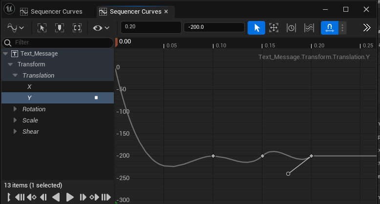 y축은 천천히 리니어하게 0.25초간 위로 200만큼 이동하도록