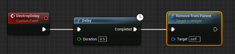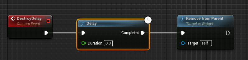 일정시간이 지난 후 위젯을 파괴시키기 위해 Custom Event 를 생성하고 딜레이를 준 다음 파괴시킨다.