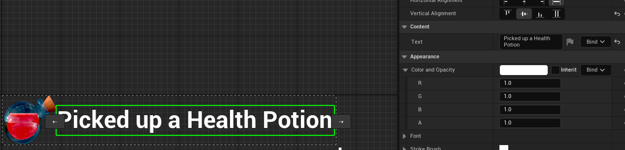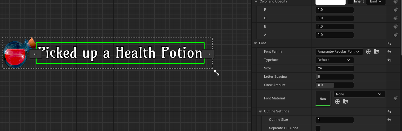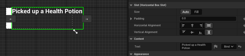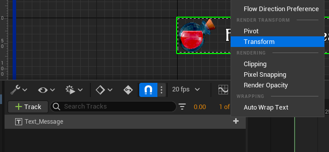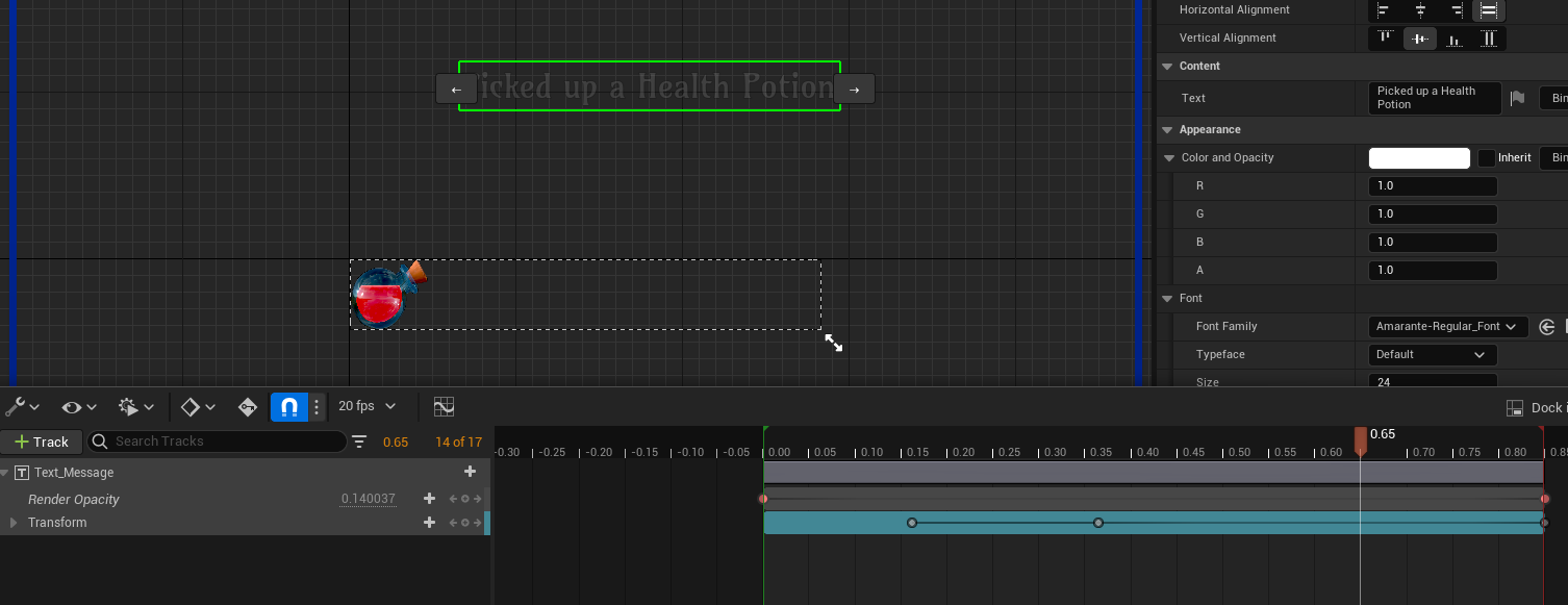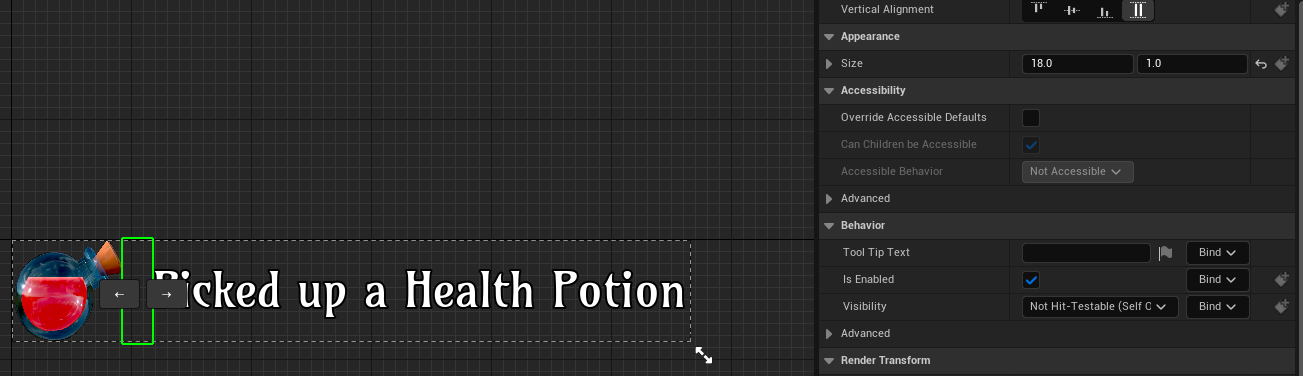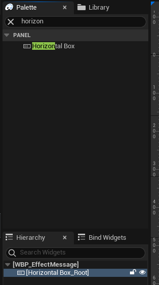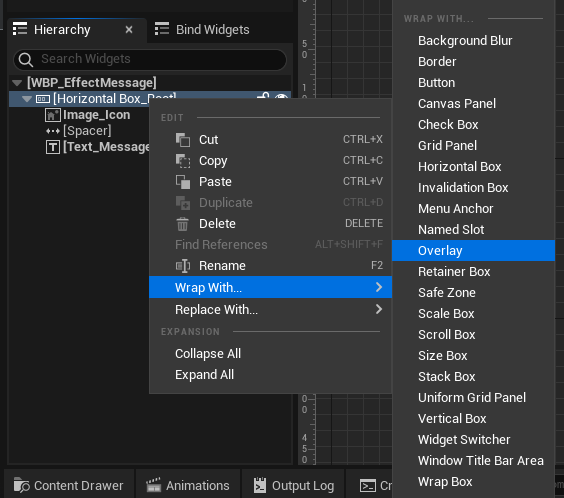 위젯의 위치와 사이즈가 이상하게 출력되는 것을 수정하기 위해 WBP_EffectMessage 에서 HorizontalBox_Root 우클릭 -> Wrap With... -> Overlay 를 선택해준다.