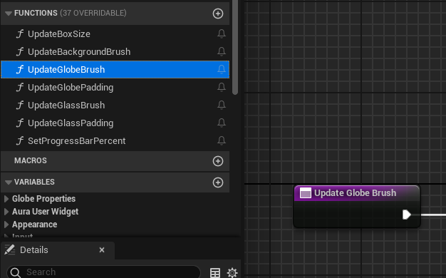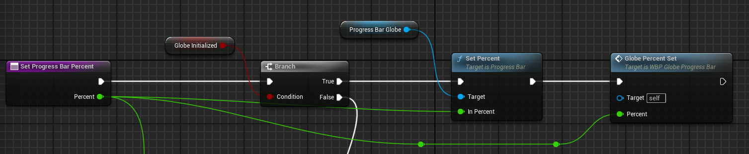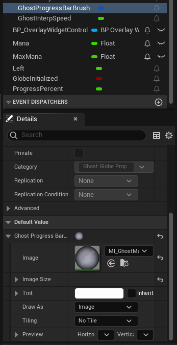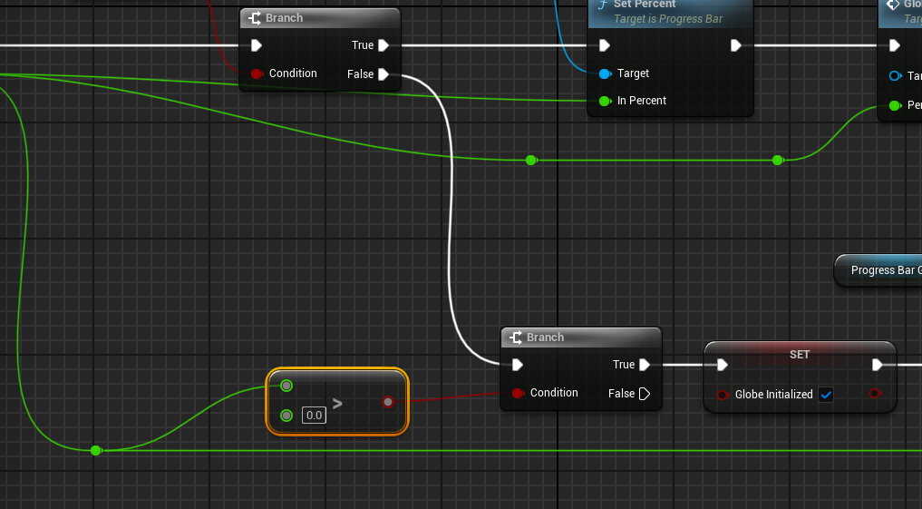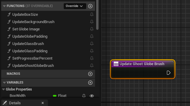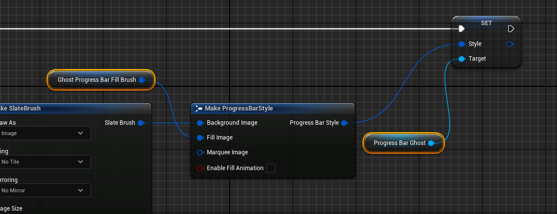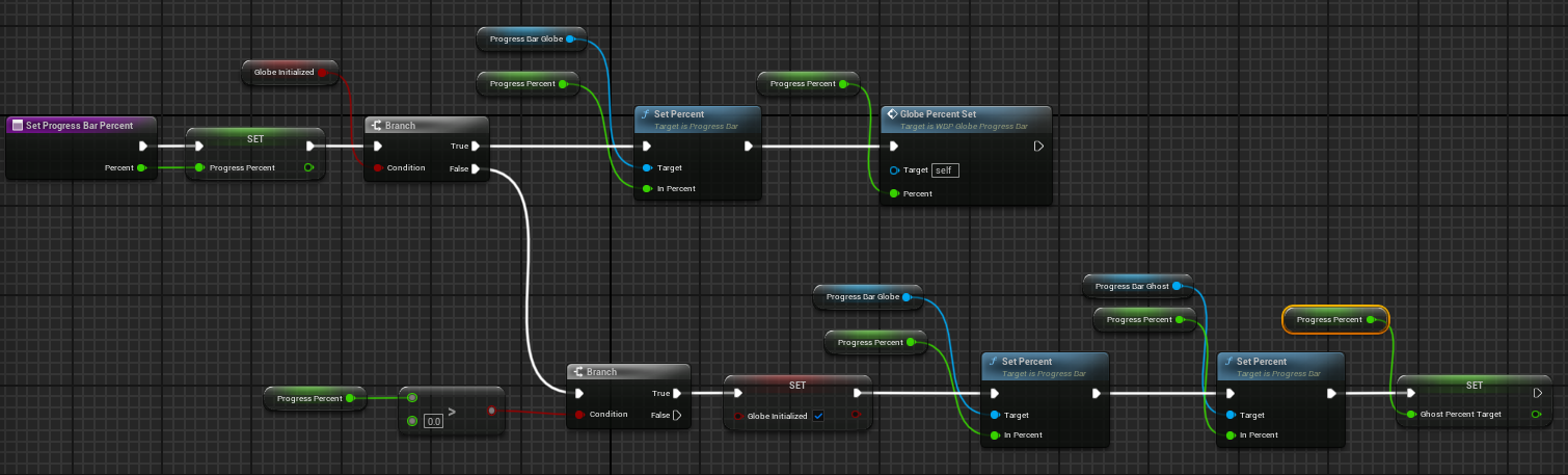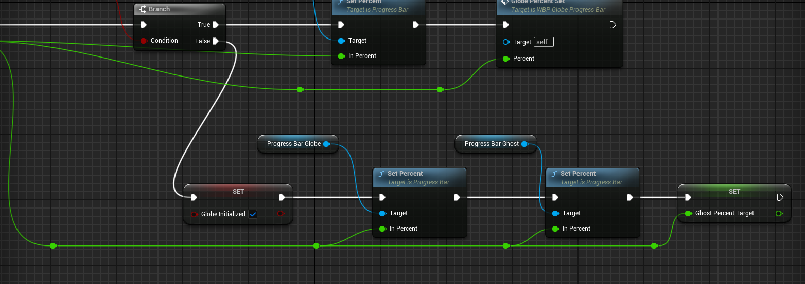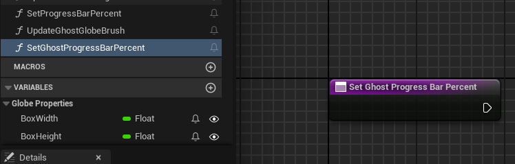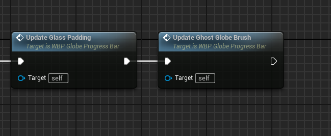 기존의 Update Globe Brush 와 동일한 기능이므로 해당 함수의 노드를 복사해서 연결하고 변수만 새로 생성해둔 GhostProgressBarFillBrush 와 ProgressBarGhost 로 변경한다.