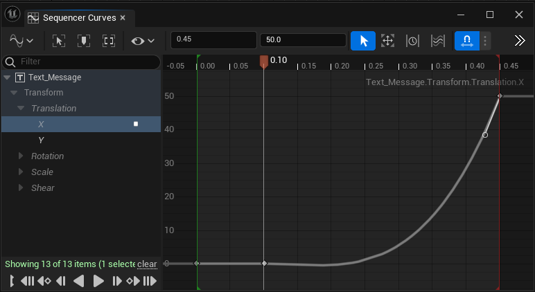 0.45초에 텍스트가 위치할 X축을 지정한다.