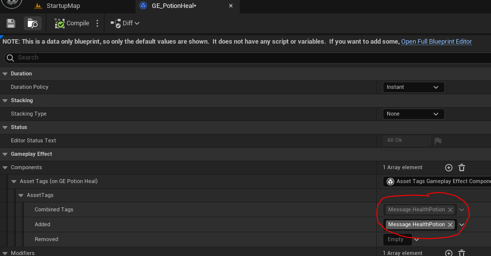 Combined Tags에서 제외됨- Target Tags GameplayEffect Component