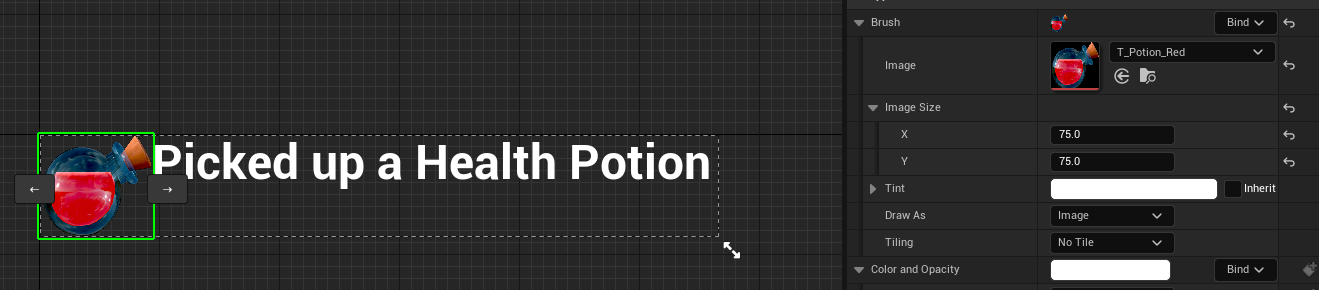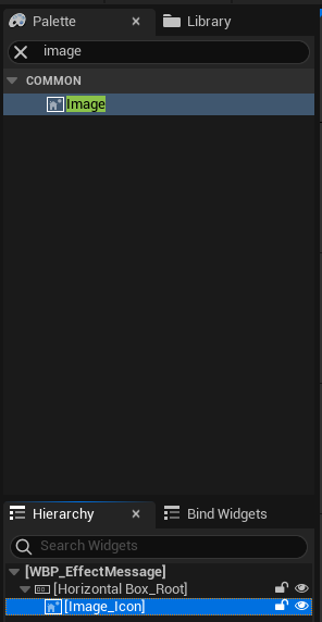 그전에 WBP_EffectMessage 에 추가해둔 Image_Icon 과 Text_Message 를 변수화하여서 노드로 사용가능하도록 한다.
