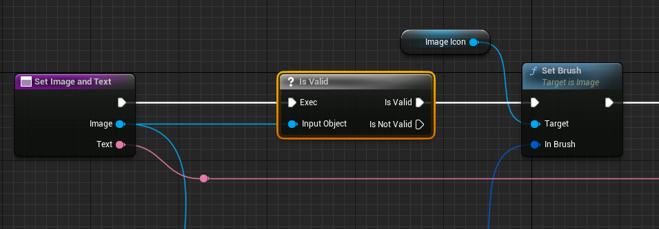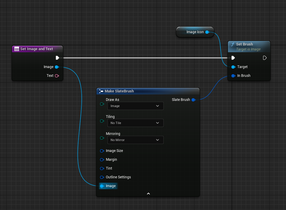 변수화한 Image_Icon 을 Target으로 하고, 함수에서 파라미터로 받은 이미지를 Iamage_Icon 으로 출력하도록 노드를 구성한다.