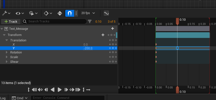0.10초에 텍스트가 위치할 Y축을 지정한 후