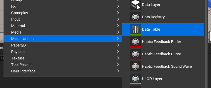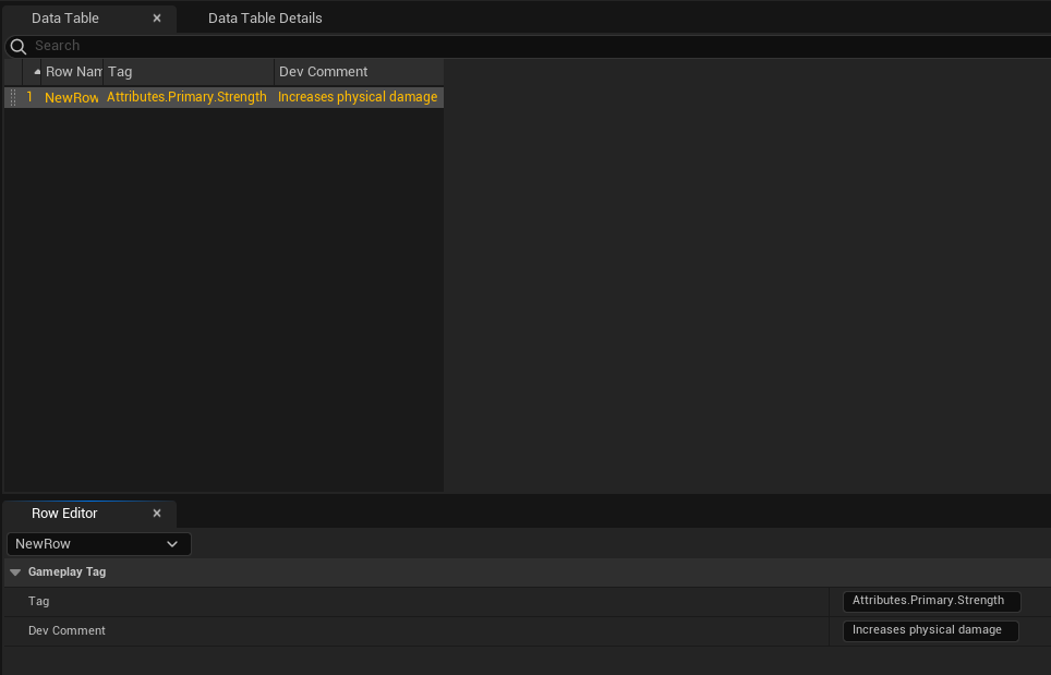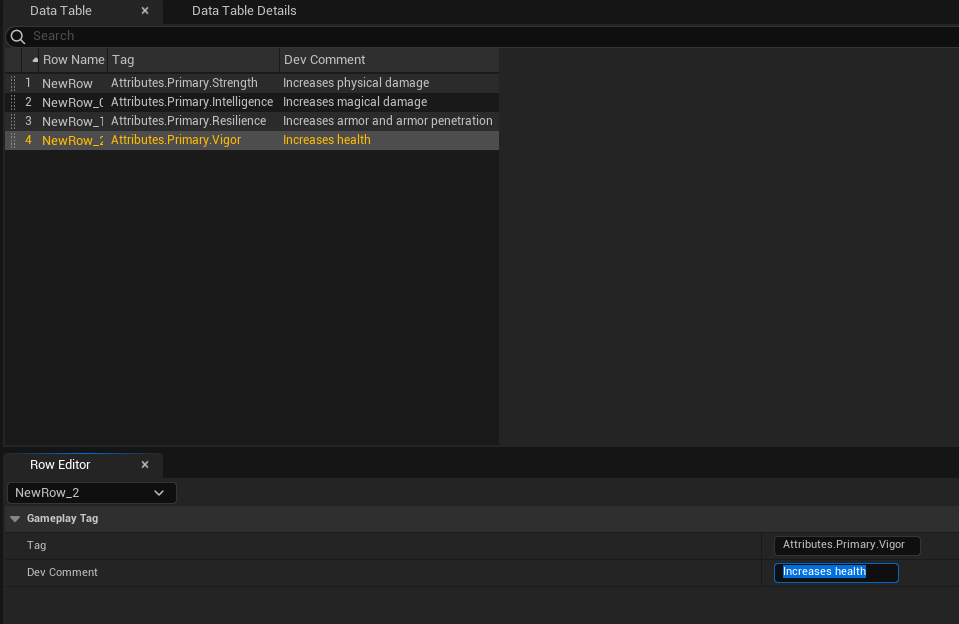먼저 기본적인 Attribute 들의 GameplayTag 를 만들기 위한 데이터 테이블을 생성한다.