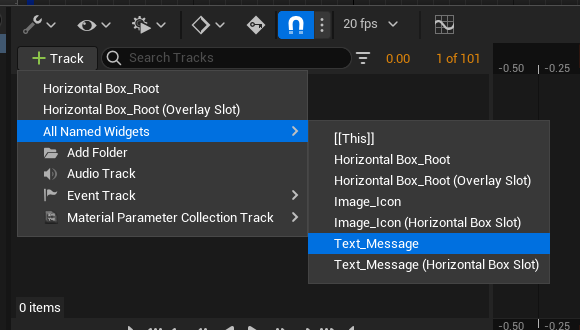 +Track -> All Named Widgets -> Text_Message 를 클릭한다.