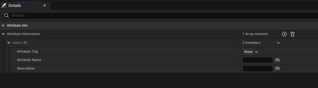 // FAuraAttributeInfo 타입 구조체 Info 생성후 Tag저장