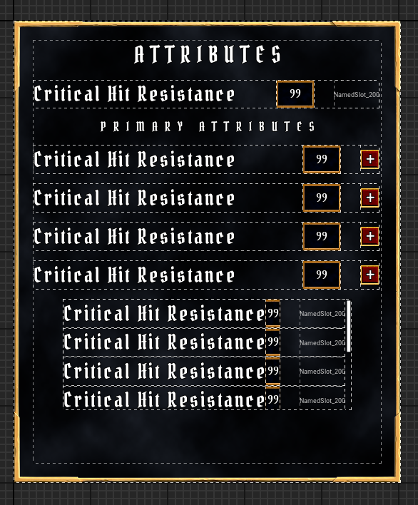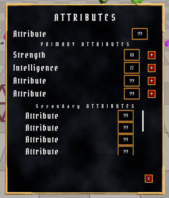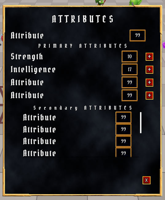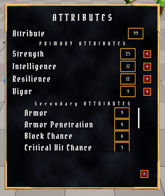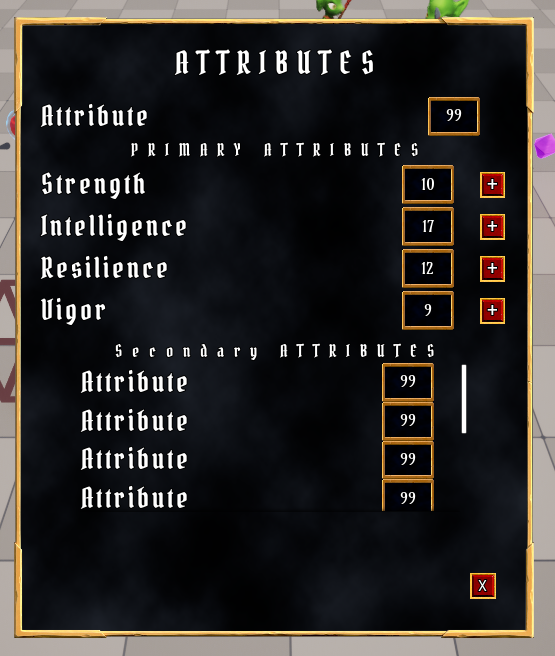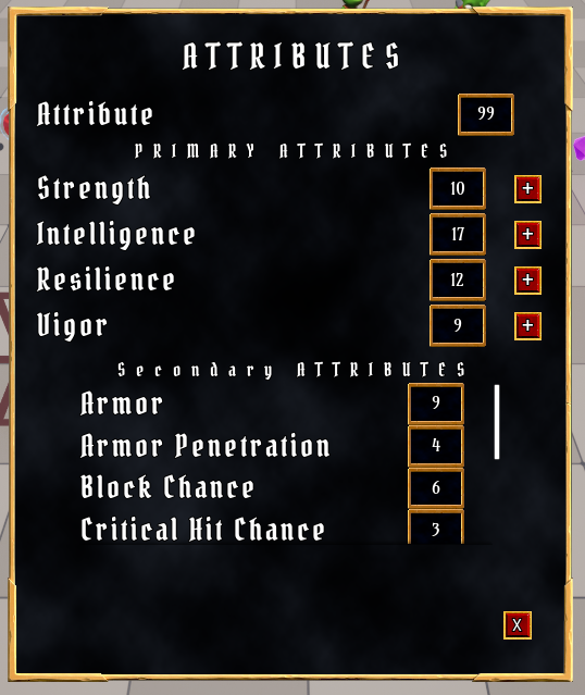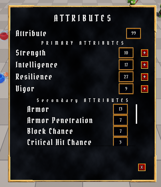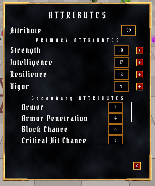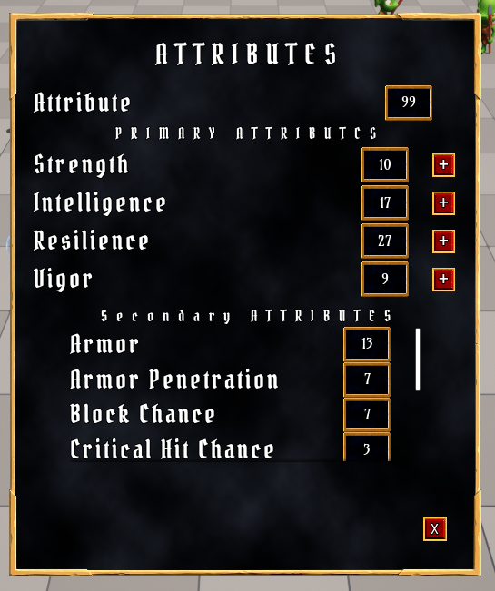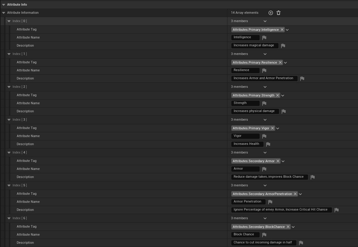 * 추가할 Attribute: Strength, Intelligence, Resilience, Vigor