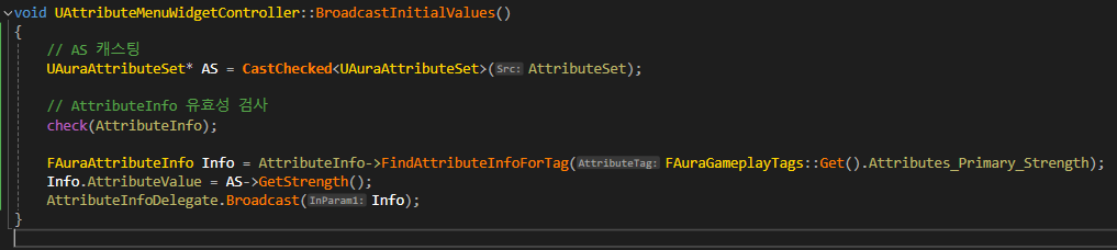 void BroadcastAttributeInfo(const FGameplayTag& AttributeTag, const FGameplayAttribute& Attribute) const;