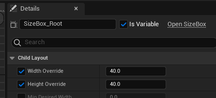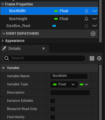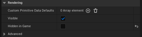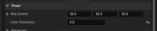 선의 두께를 5로 변경하고, Hidden in Game 을 비활성화하여 인게임에서 Box Collision 을 볼 수 있도록 한다.