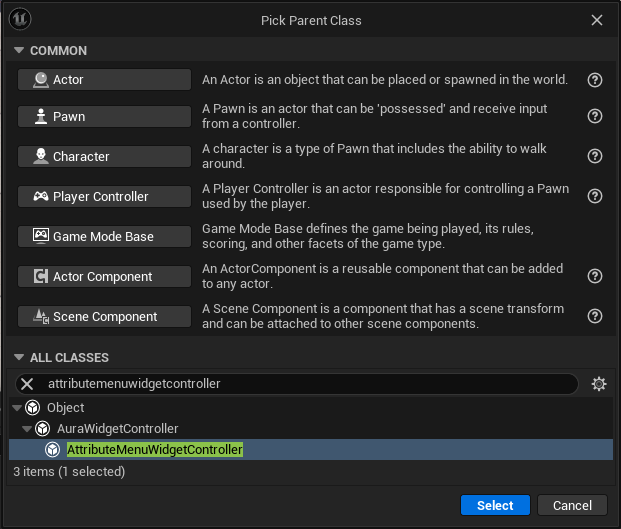 AttributeMenuWidgetController.cpp에서AuraGameplayTags.h를 더이상 사용하지 않으므로 삭제