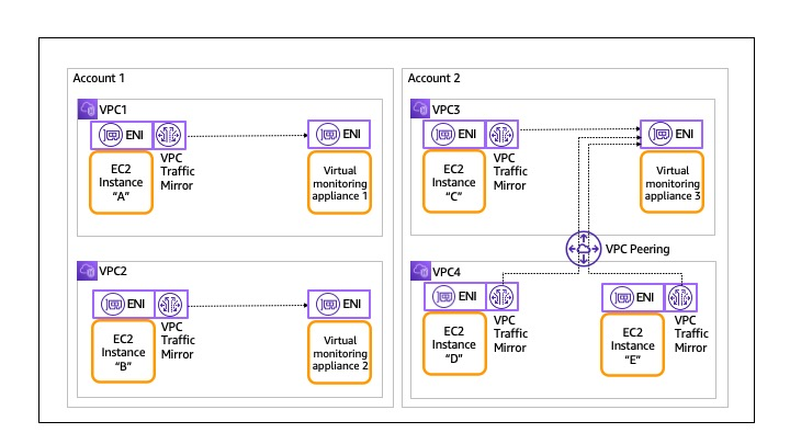 - 가상 모니터링 어플라이언스 : 네트워크 트래픽을 분석하기 위해 EC2 인스턴스에서 실행되는 특수 소프트웨어