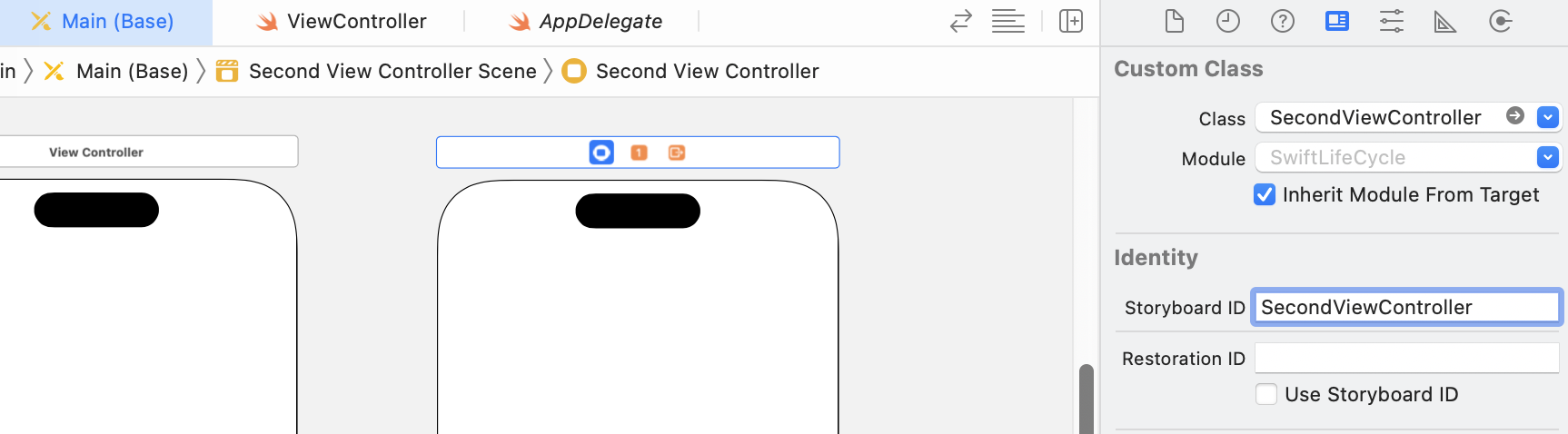 ➡️ solve) Identity Storyboard ID도 설정해줘야함