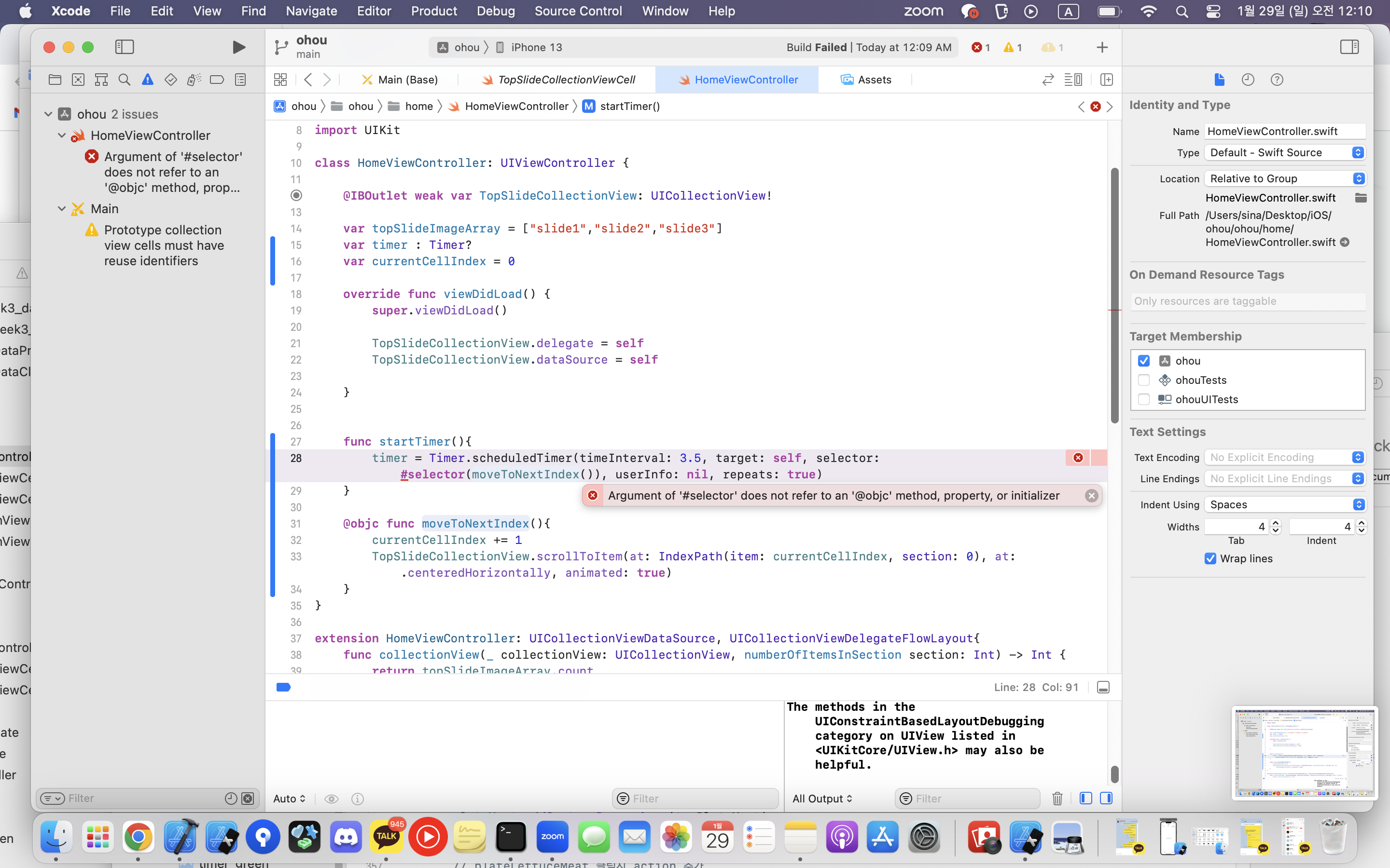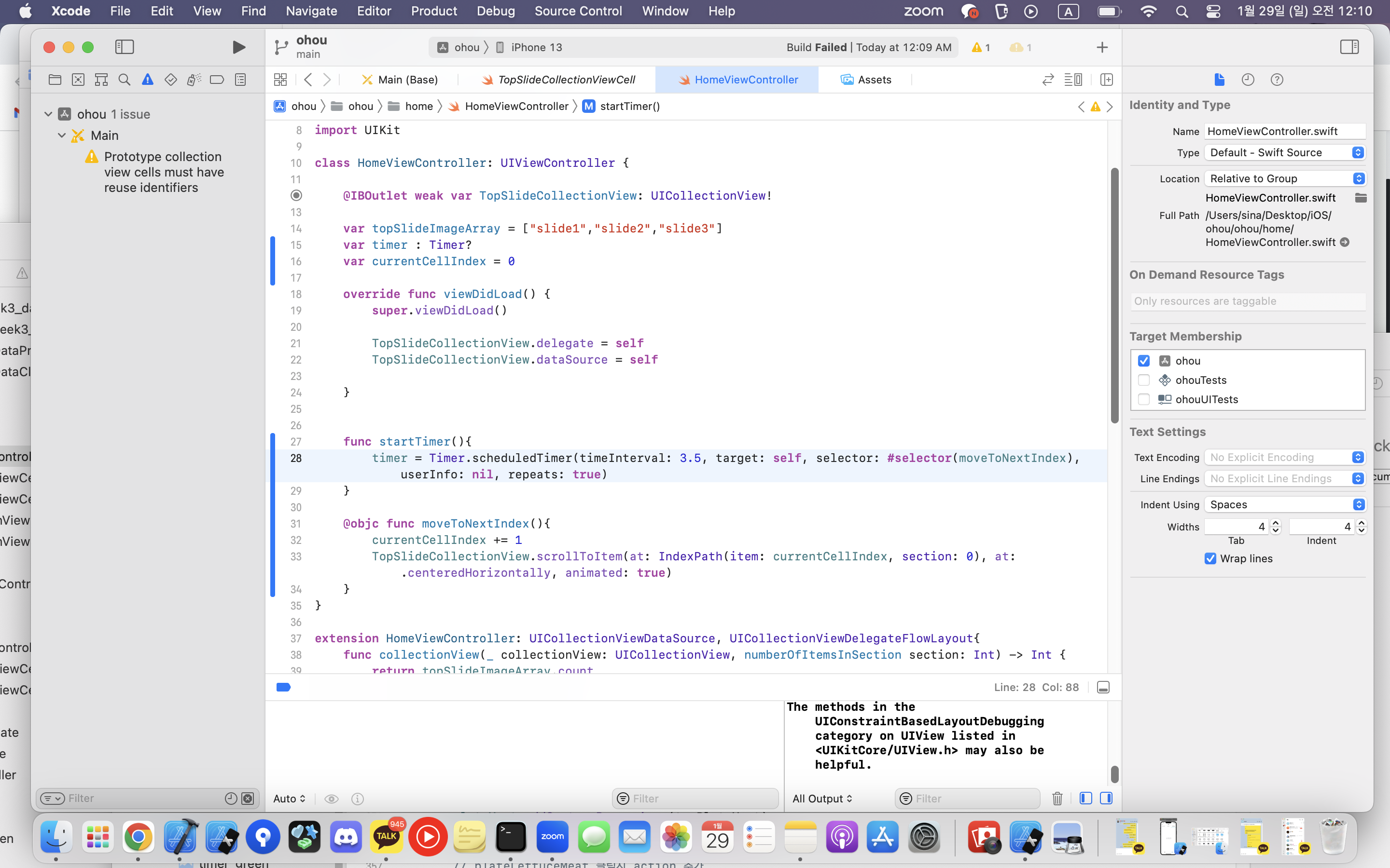 위와같이 페이지컨트롤을 콜렉션뷰가 아닌 동일 계층에 넣고 뷰 컨트롤러에 연결해주면 해결