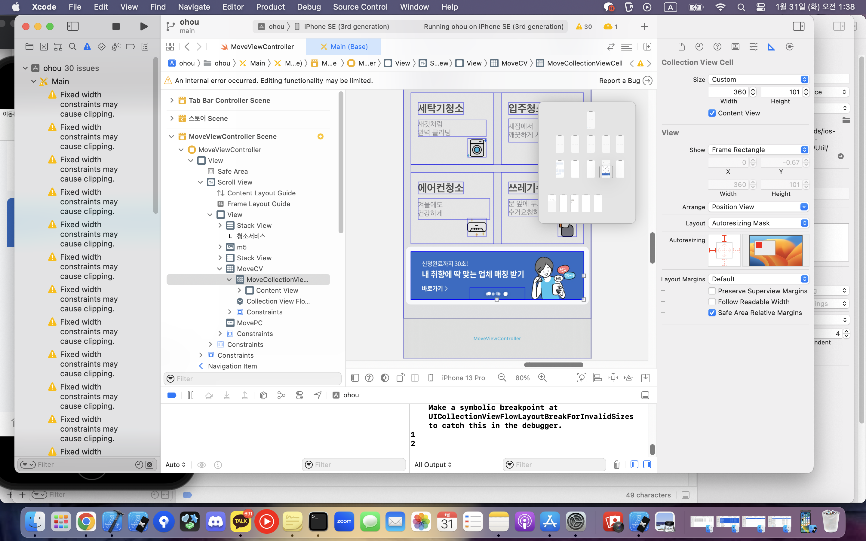 하고 이미지 constraint 우,하 취소했더니 처음에는 이상한데 스크롤 한번 하고나면 제대로 나옴
