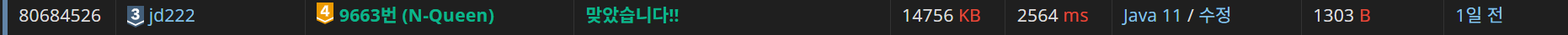 // Q가 있는 열, 오른쪽 대각선, 왼쪽 대각선에 값이 있는 경우 continue;