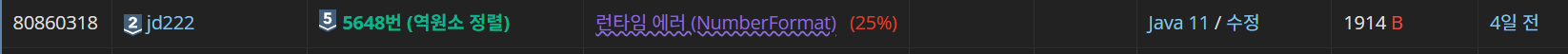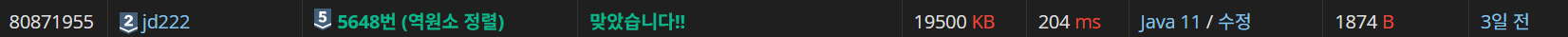// 백준 5648 S5 역원소 정렬