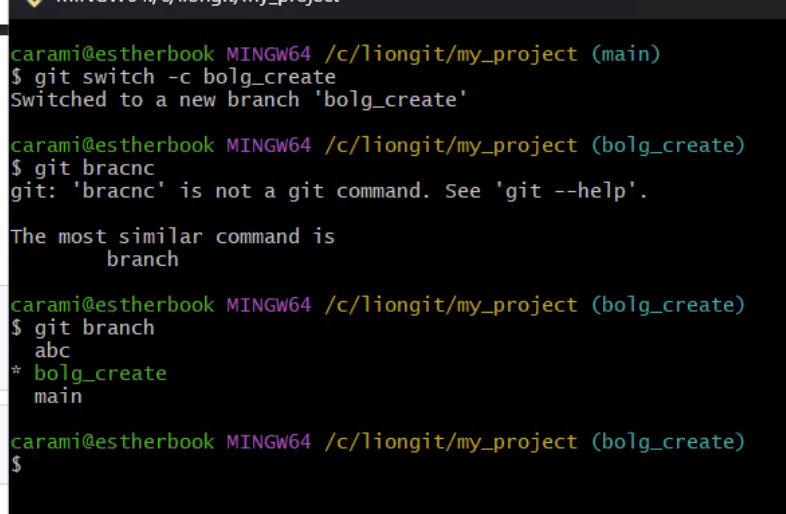 git switch abc -> abc 브랜치를 들어가는것 (이동)