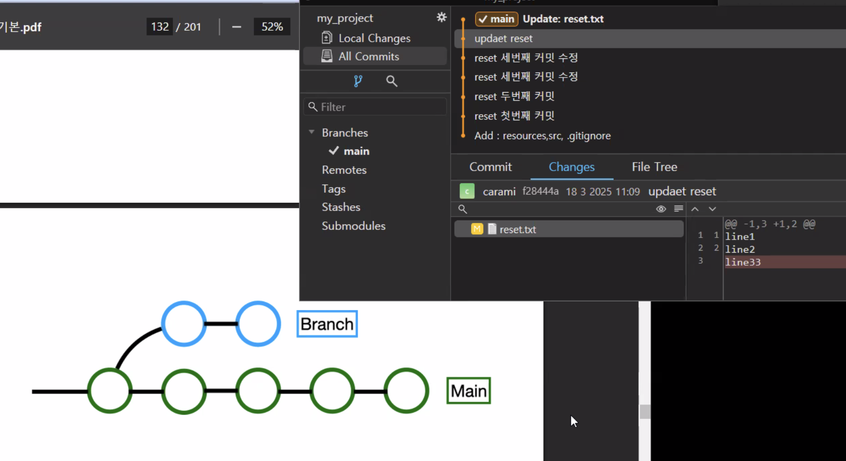 메인이라는 브랜치 하나만 사용하고 있었는데