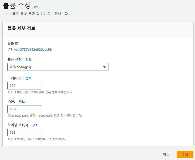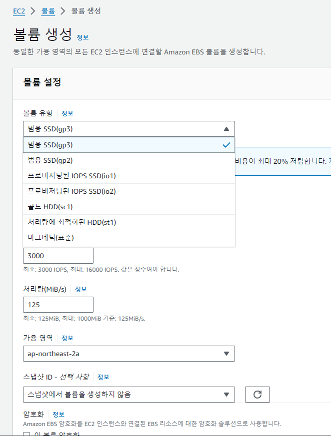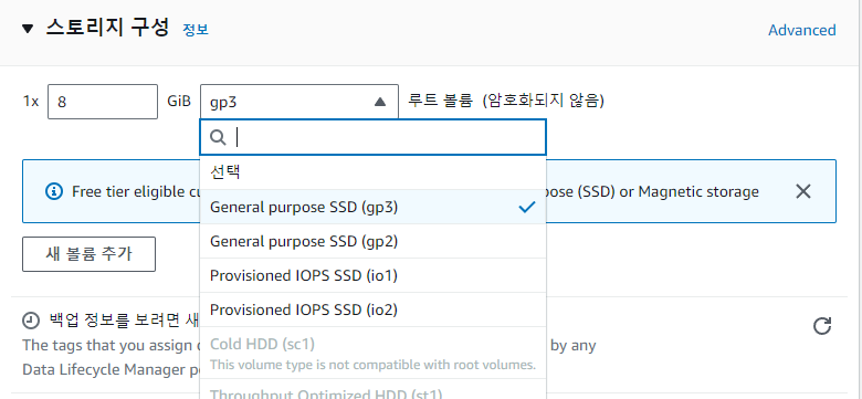 스토리지 구성: EC2 생성 시 EBS스토리지 구성