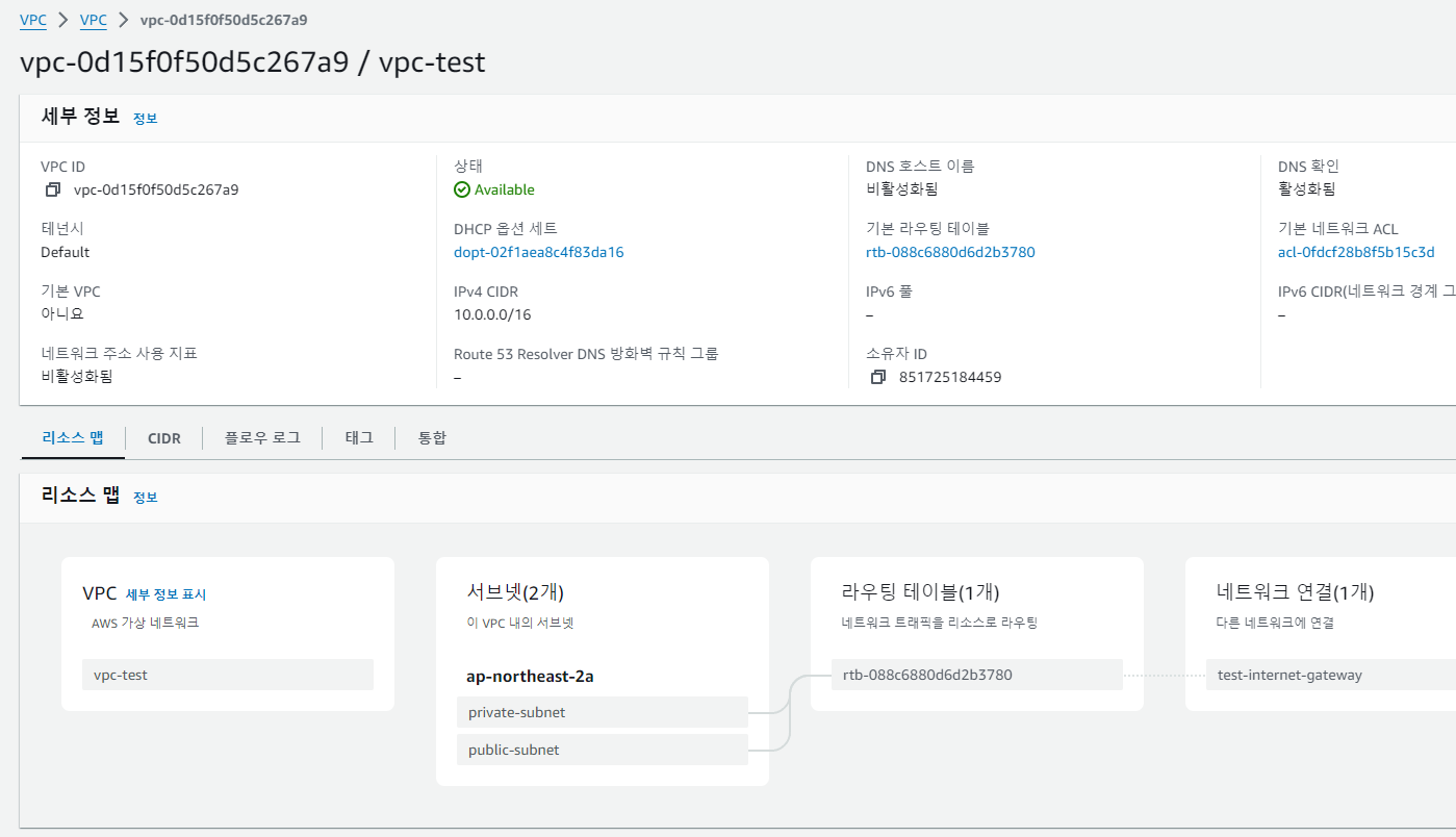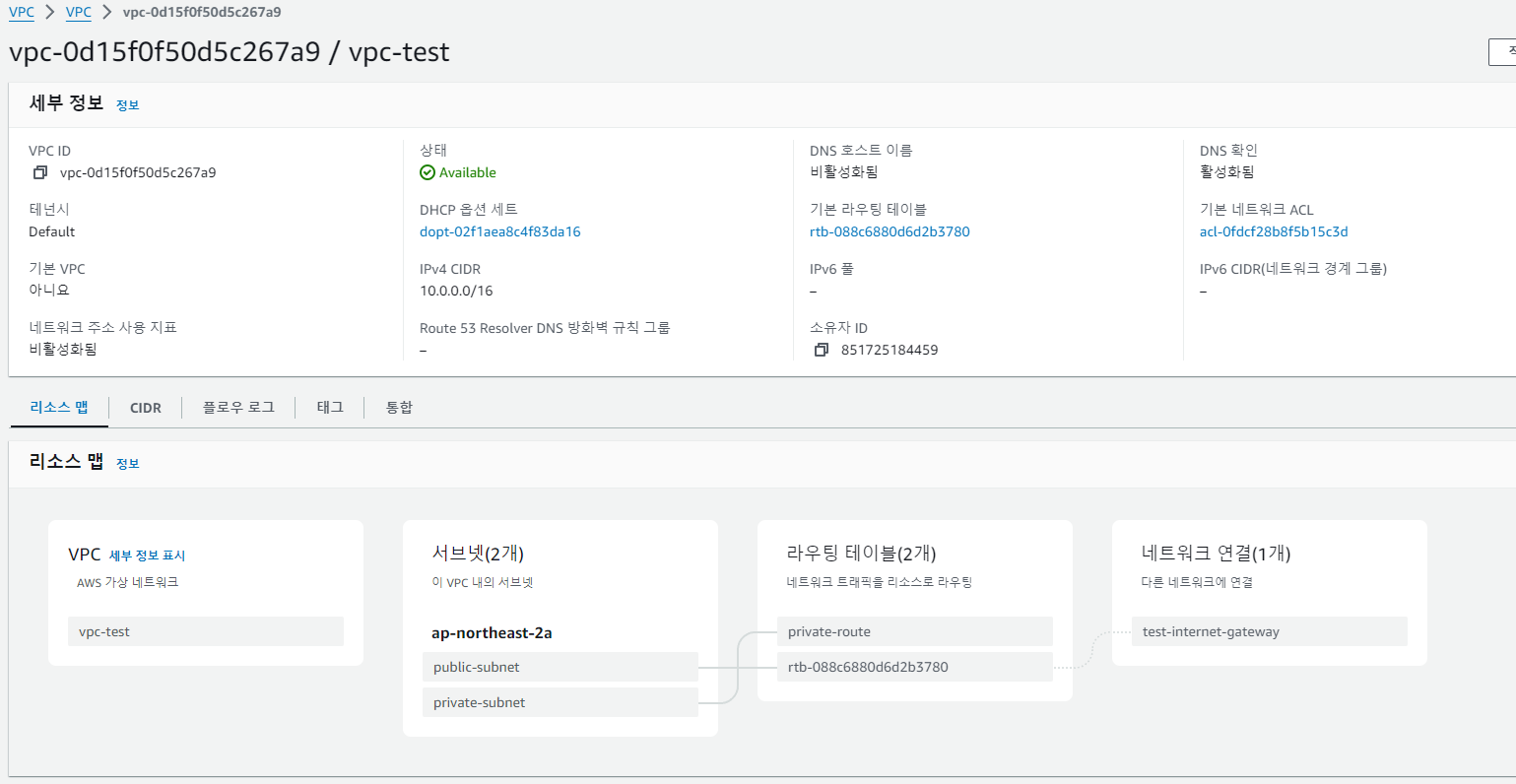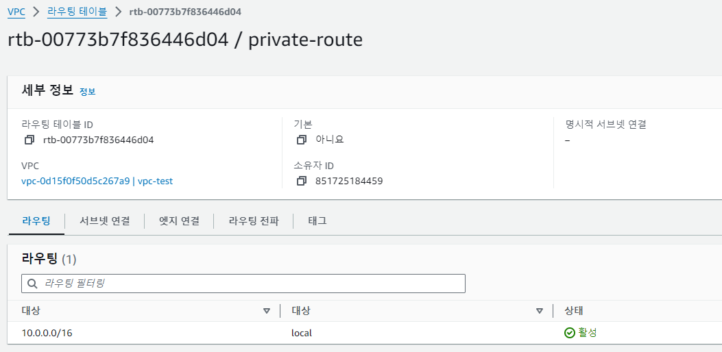 Private 서브넷의 라우팅 생성 - VPC 트래픽 (10.0.0.0/16)이 내부(local)로 향하도록