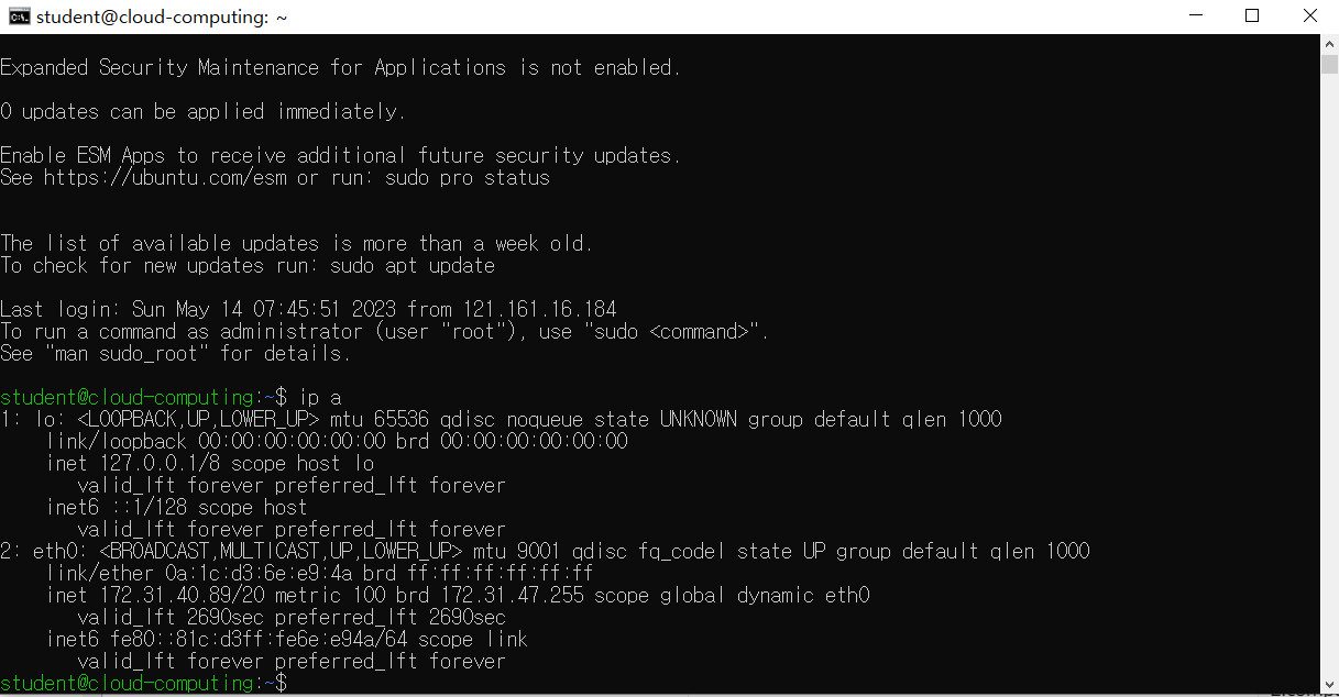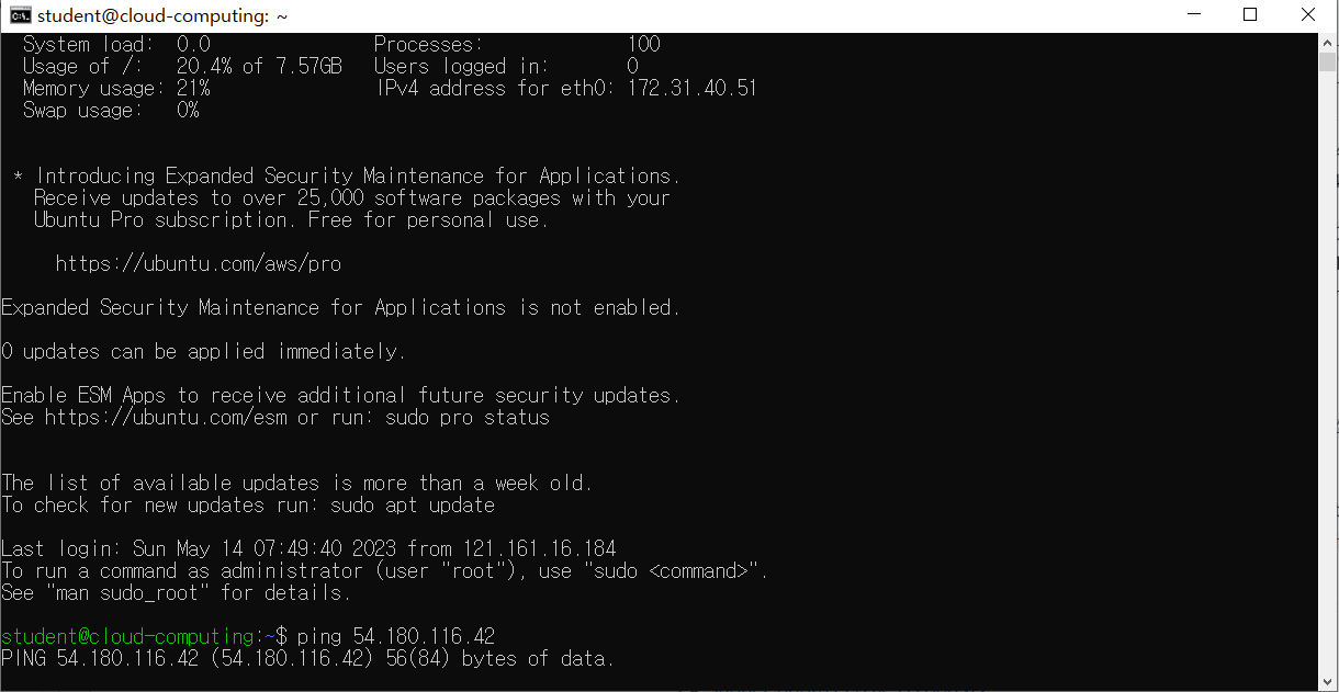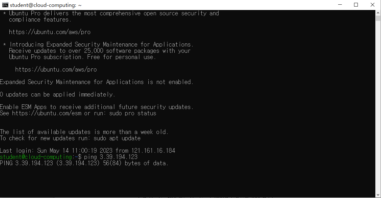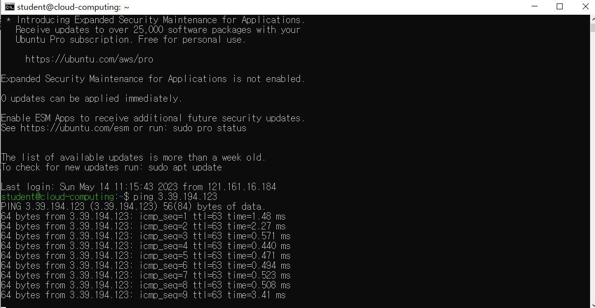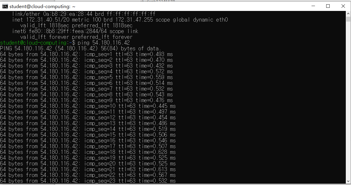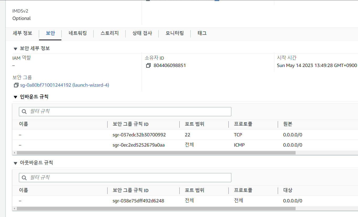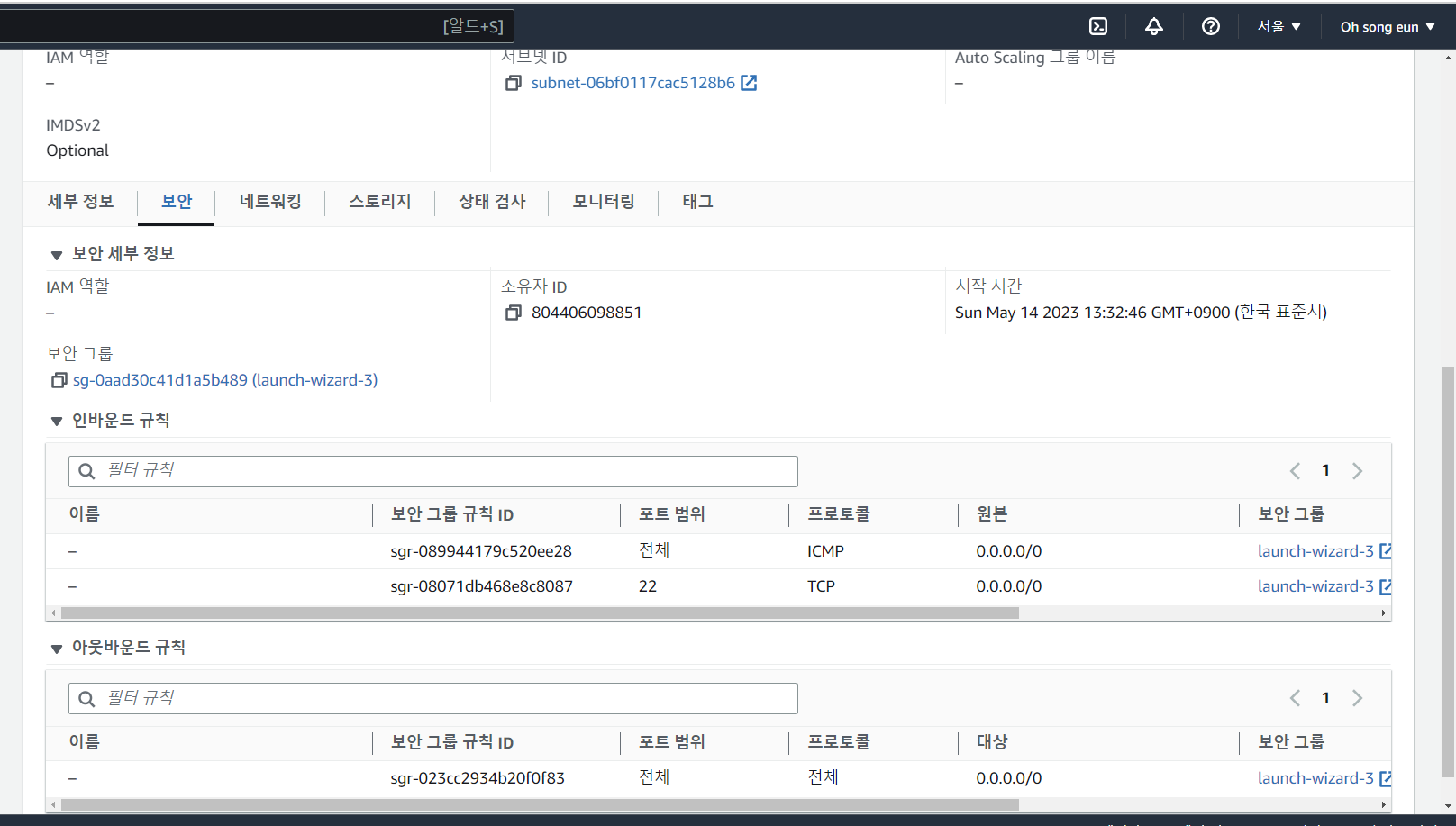 보안그룹의 인바운드 규칙에 ICMP 허용 추가 필요