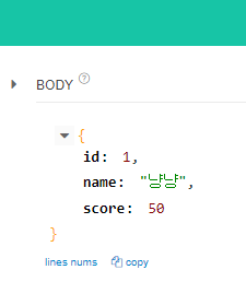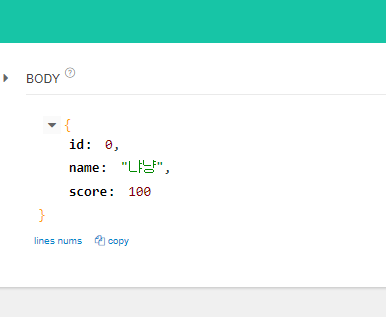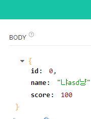 api tester에서 아래 json을 넣고 PUT으로 넣으면