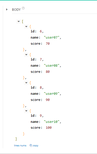http://localhost:8080/api/user/score?score=70 을 GET으로 보내게 되면