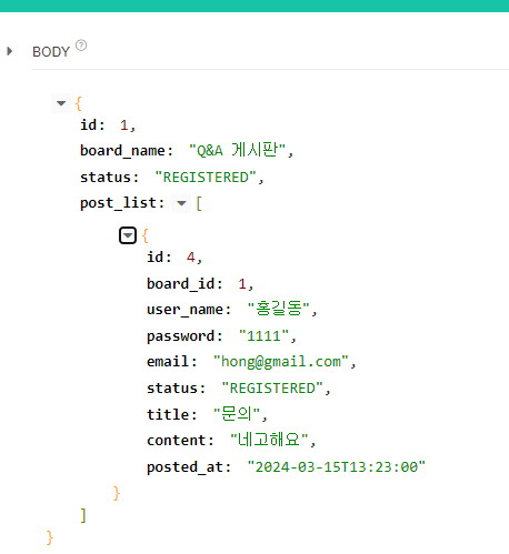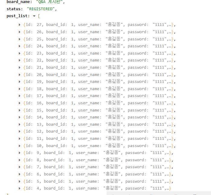 1번 게시판을 불러왔을 때 status가 registered인 것만 나온다.