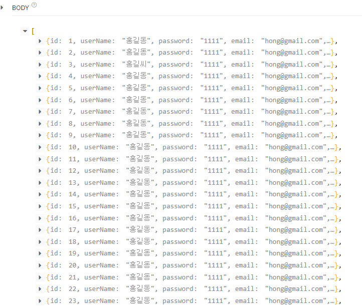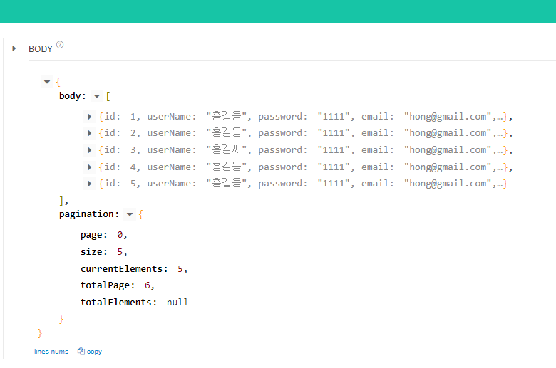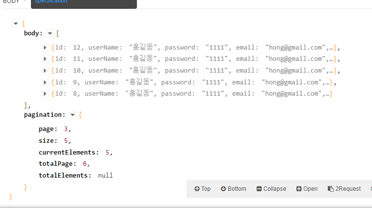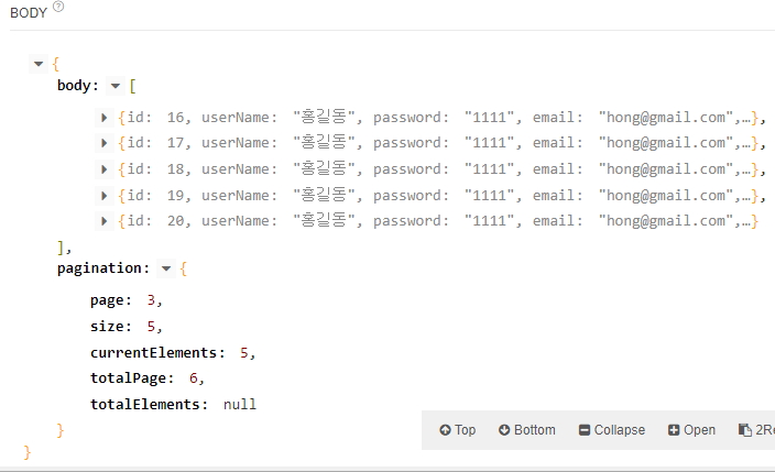 GET으로 http://localhost:8080/api/post/all?page=0&size=5 에 SEND하면 아래 처럼 나온다