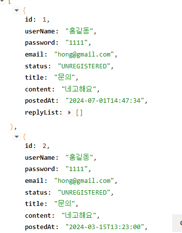 이제는 PostEntity 안에 @OneToMany라는 annotation을 통해 reply list를 가져오도록 돼 있기 때문이다.