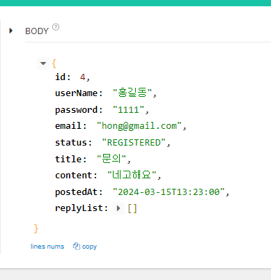 API TESTER에서 POST로 http://localhost:8080/api/post/view 에 SEND하면