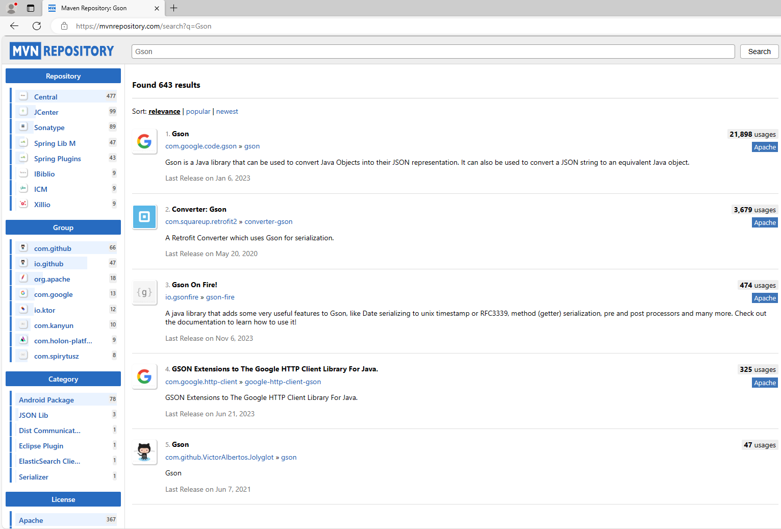 JAVA API를 다운받아 사용하는 법 → https://mvnrepository.com