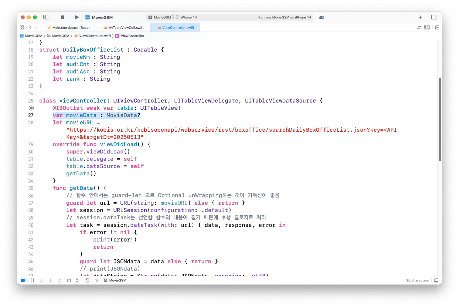 데이터를 앱에 보여주기 위해 옵셔널 MovieData 형으로 정의