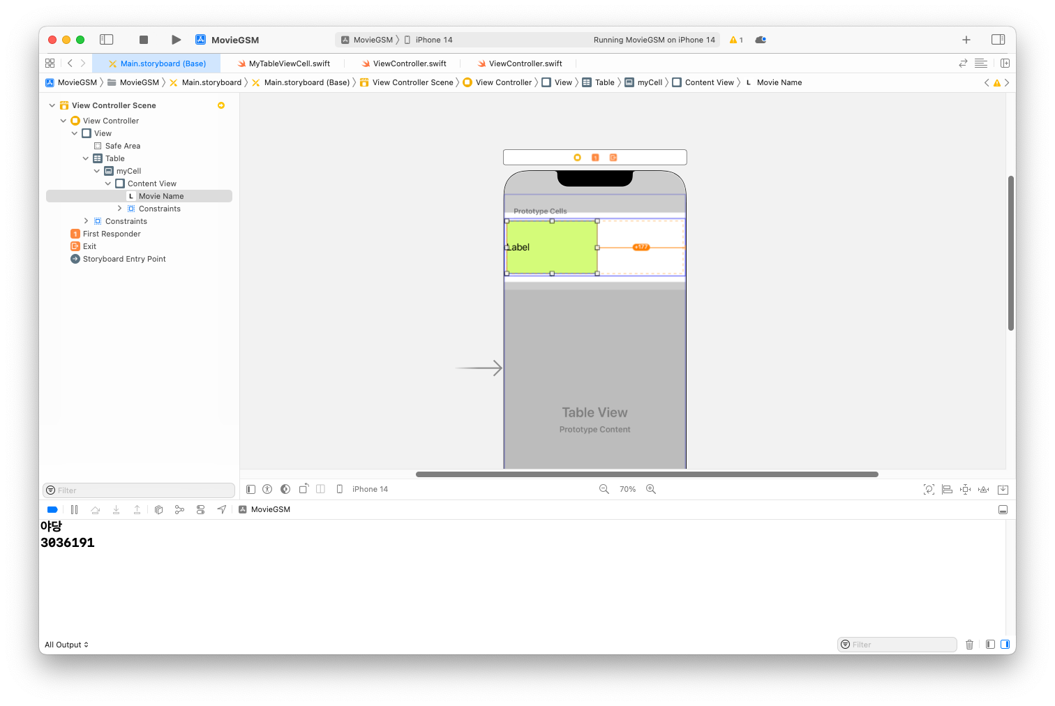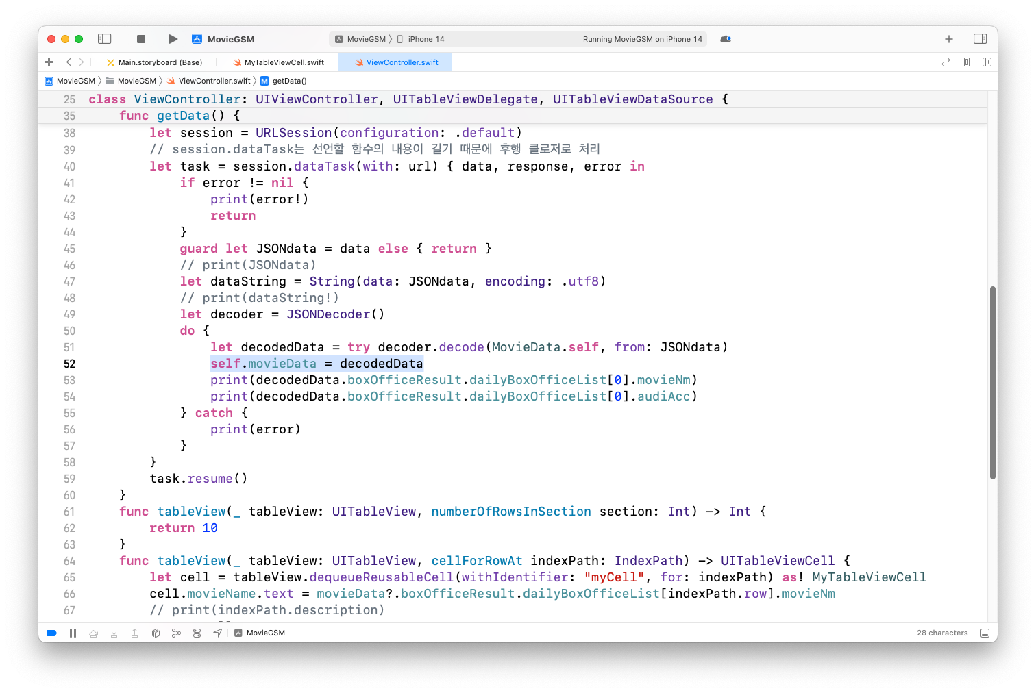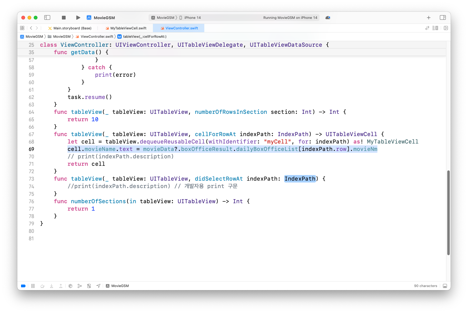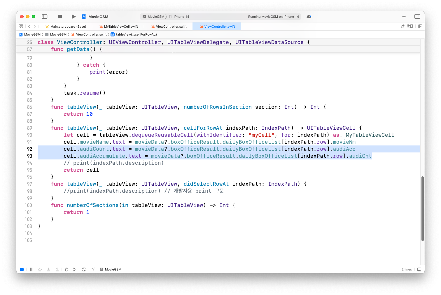 tableView(_: cellForRowAt:) 함수 내용을 다음과 같이 변경